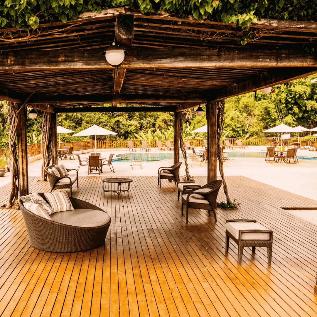 Situada em frente ao hotel, a Taberna é um espaço versátil com capacidade para até 150 pessoas. Com mesas, cadeiras, banheiros e uma ampla área para atividades, este espaço exclusivo conta com uma roda d’água encantadora e uma vista panorâmica deslumbrante para a mata atlântica.